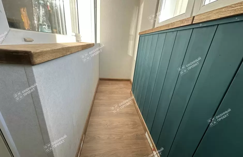 Отделка балкона деревянной вагонкой под покраску с деревянными подоконниками